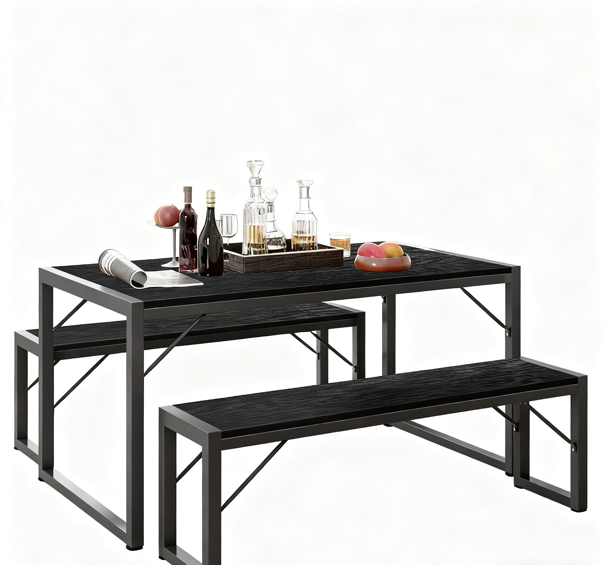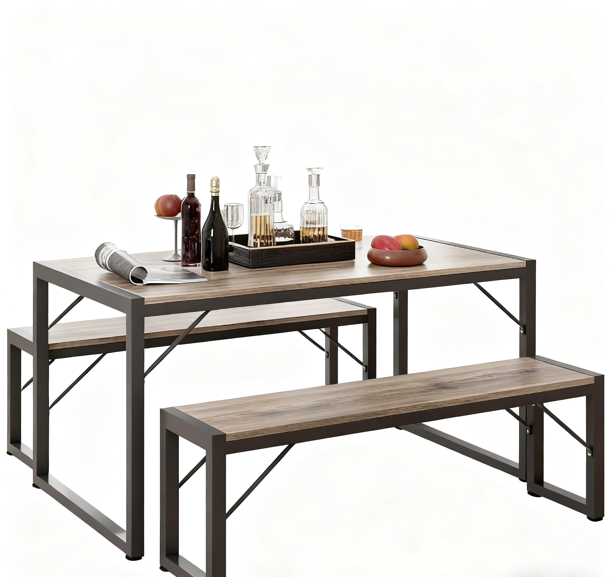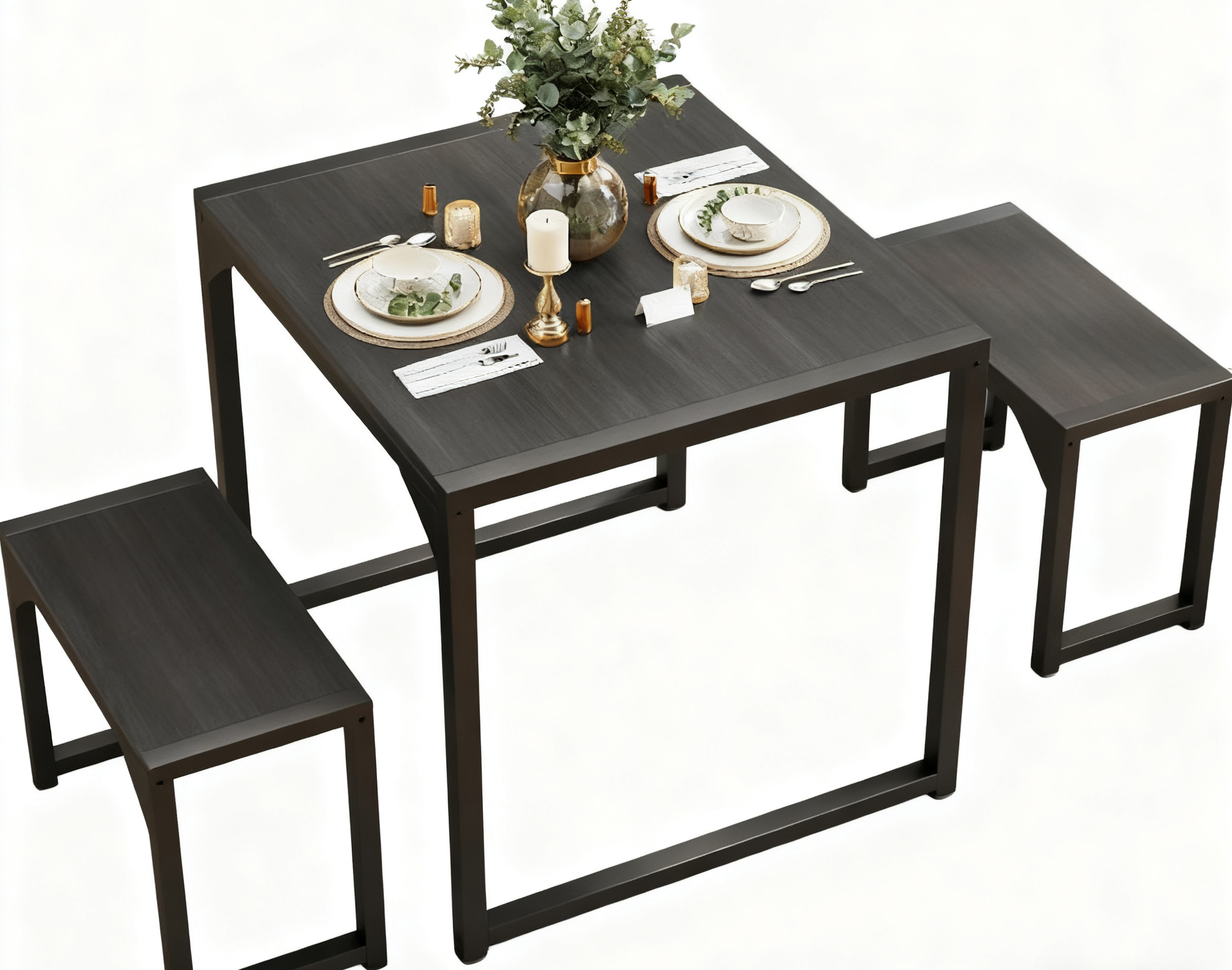 The kitchen table is made of P2-grade MDF and heavy-duty powder-coated thick metal frame, ensuring stability, durability, scratch resistance, wear resistance, and easy cleaning.