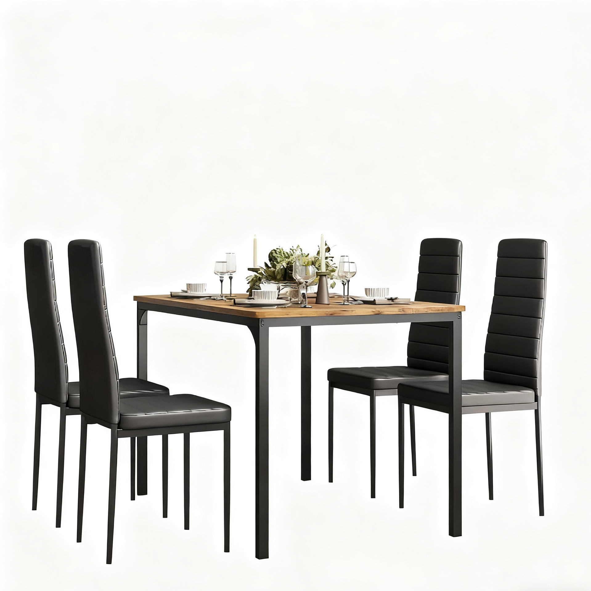 The set includes a stylish dining table and four sophisticated PU leather-wrapped chairs, perfectly suited for four people
