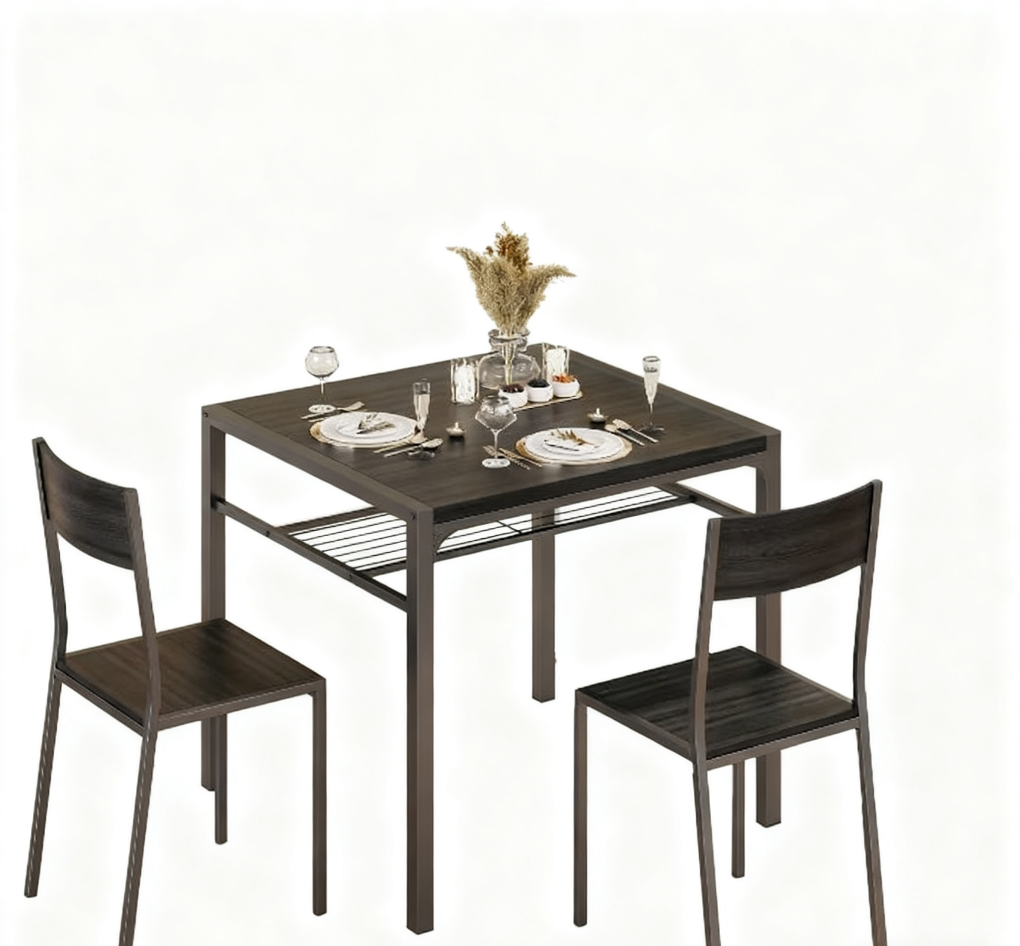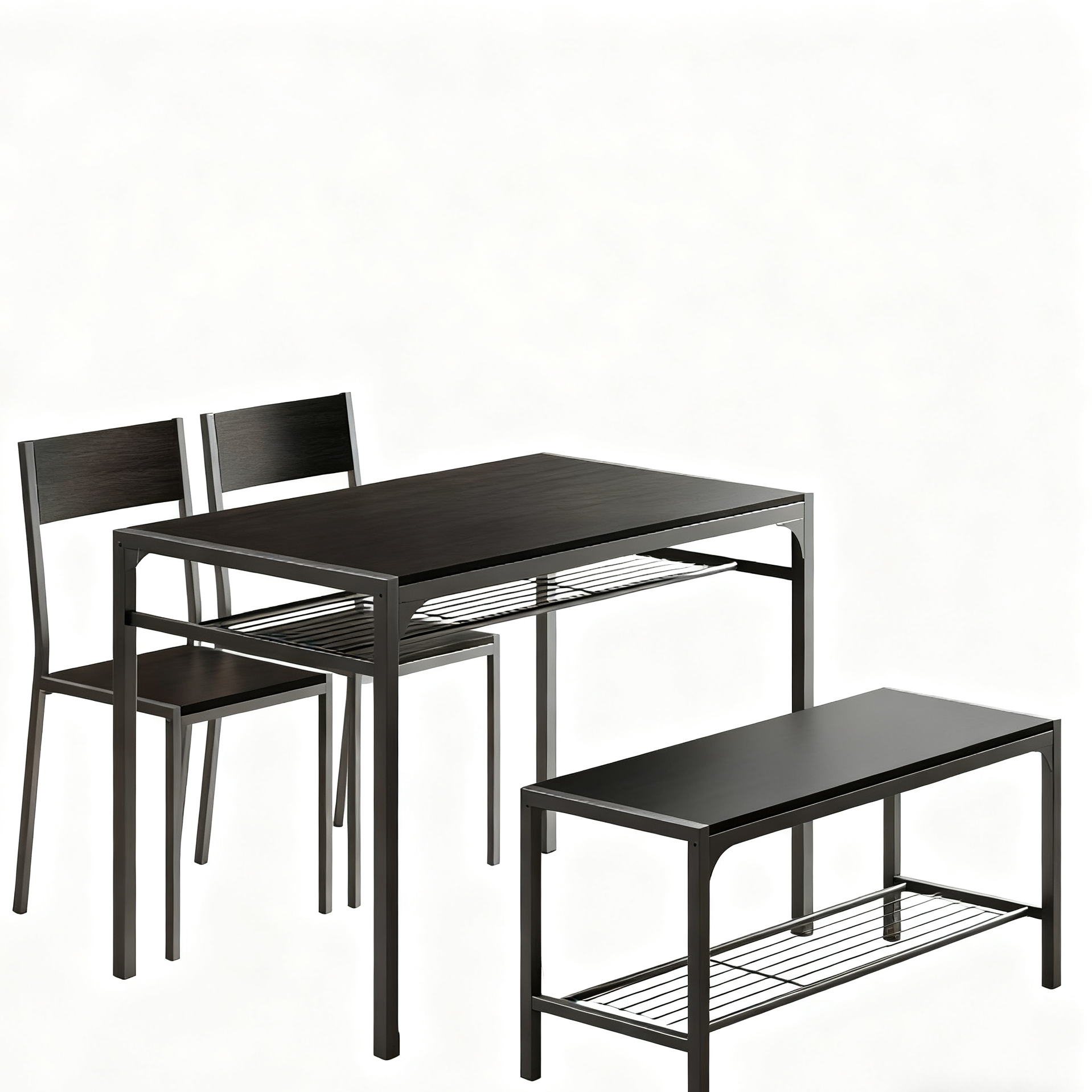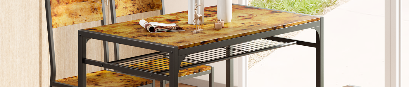 This dining table set is not just for dining; it can also double as a workspace. With the added storage rack, you can keep books, throw pillows, storage baskets, and kitchenware organized and within reach