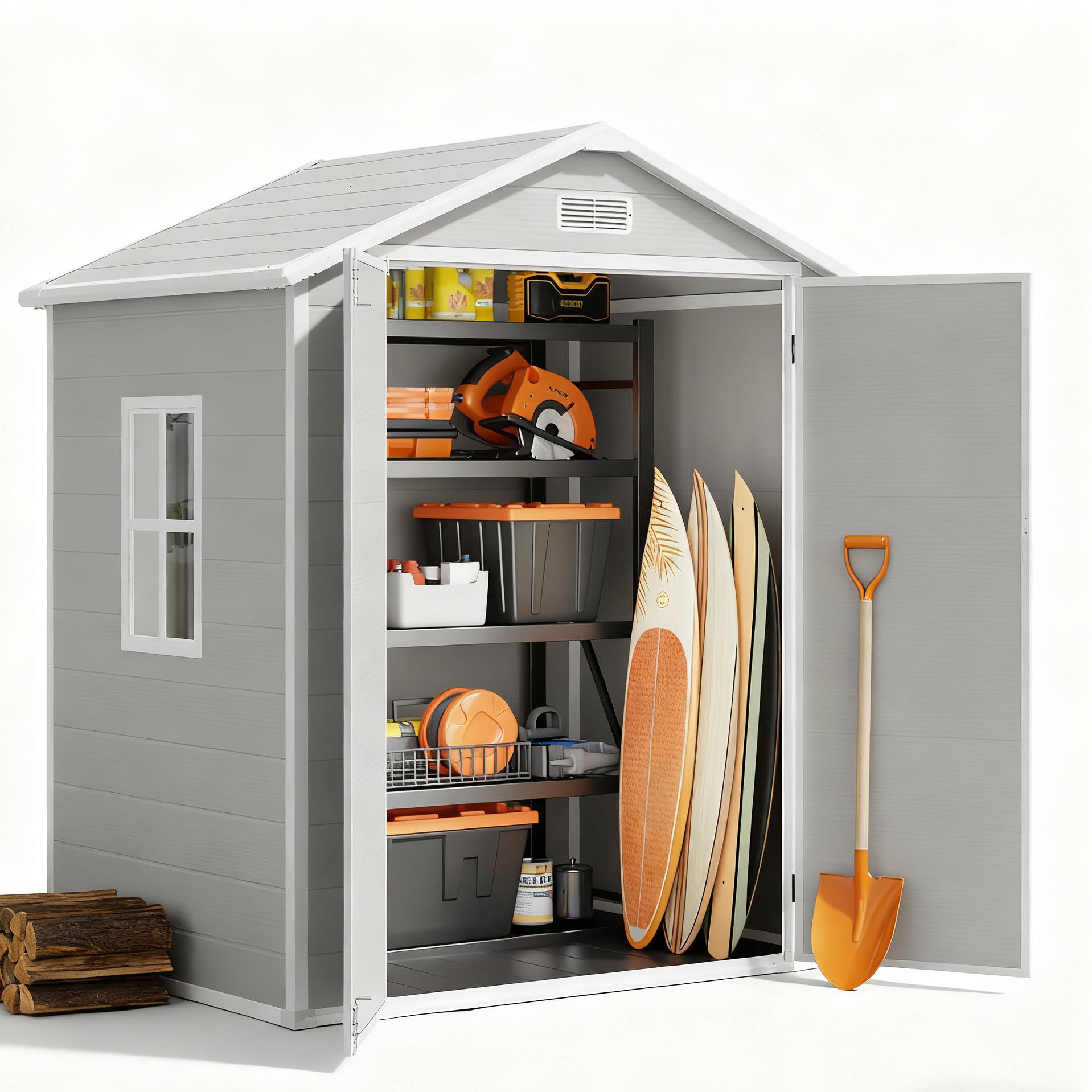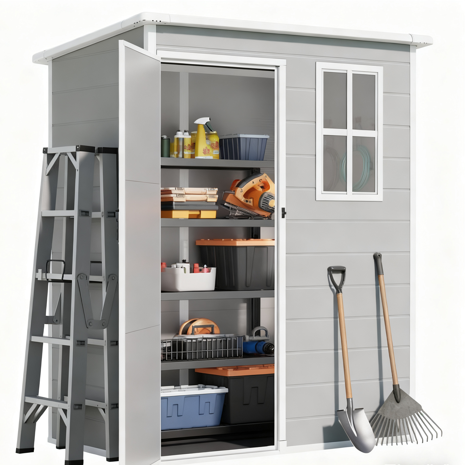 This storage shed is crafted from top-notch plastic. It's built to last, and it'll also give your outdoor area a sleek, modern look.