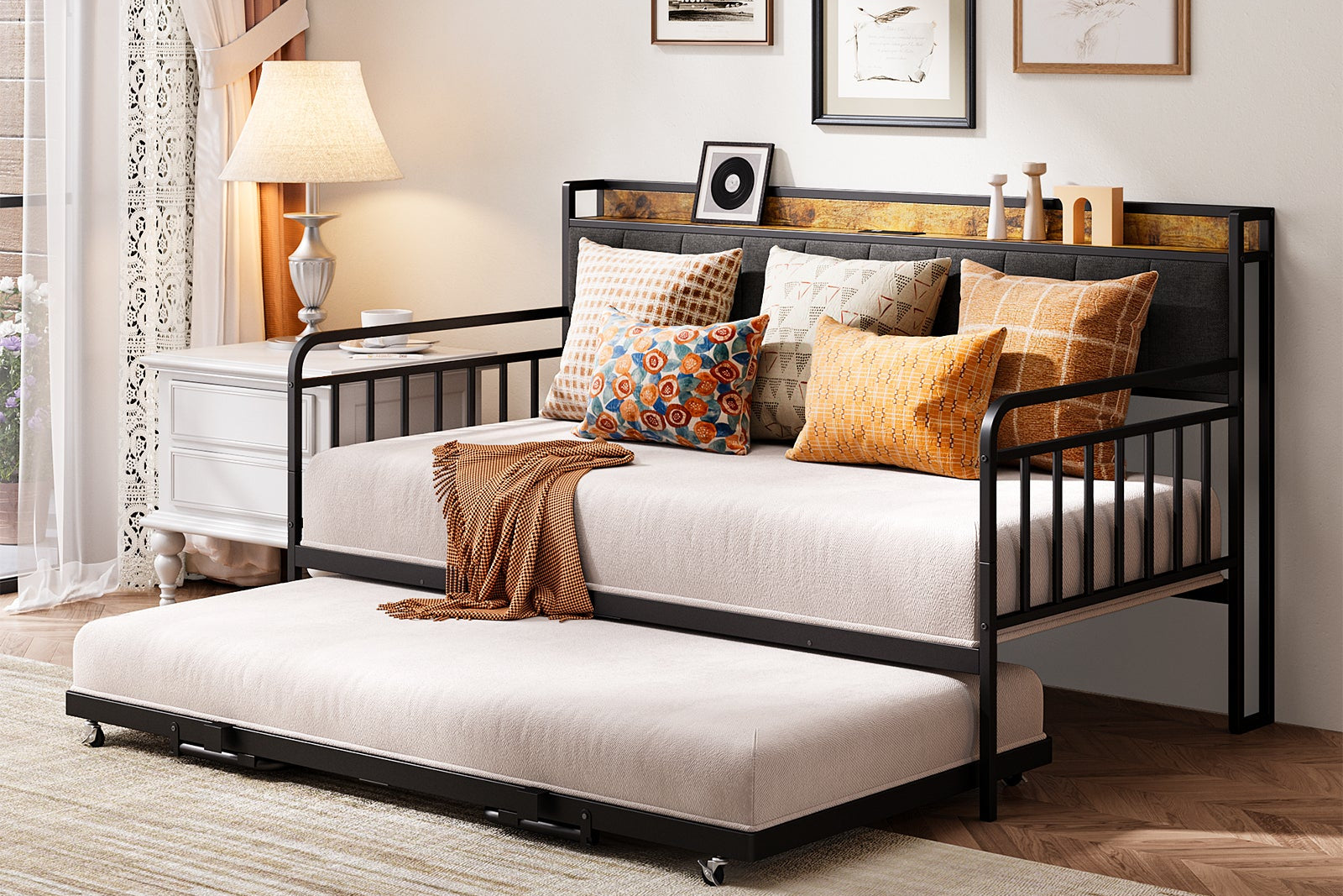 Our 2-in-1 twin daybed is designed for small apartments, cozy guest rooms or multifunctional lounges