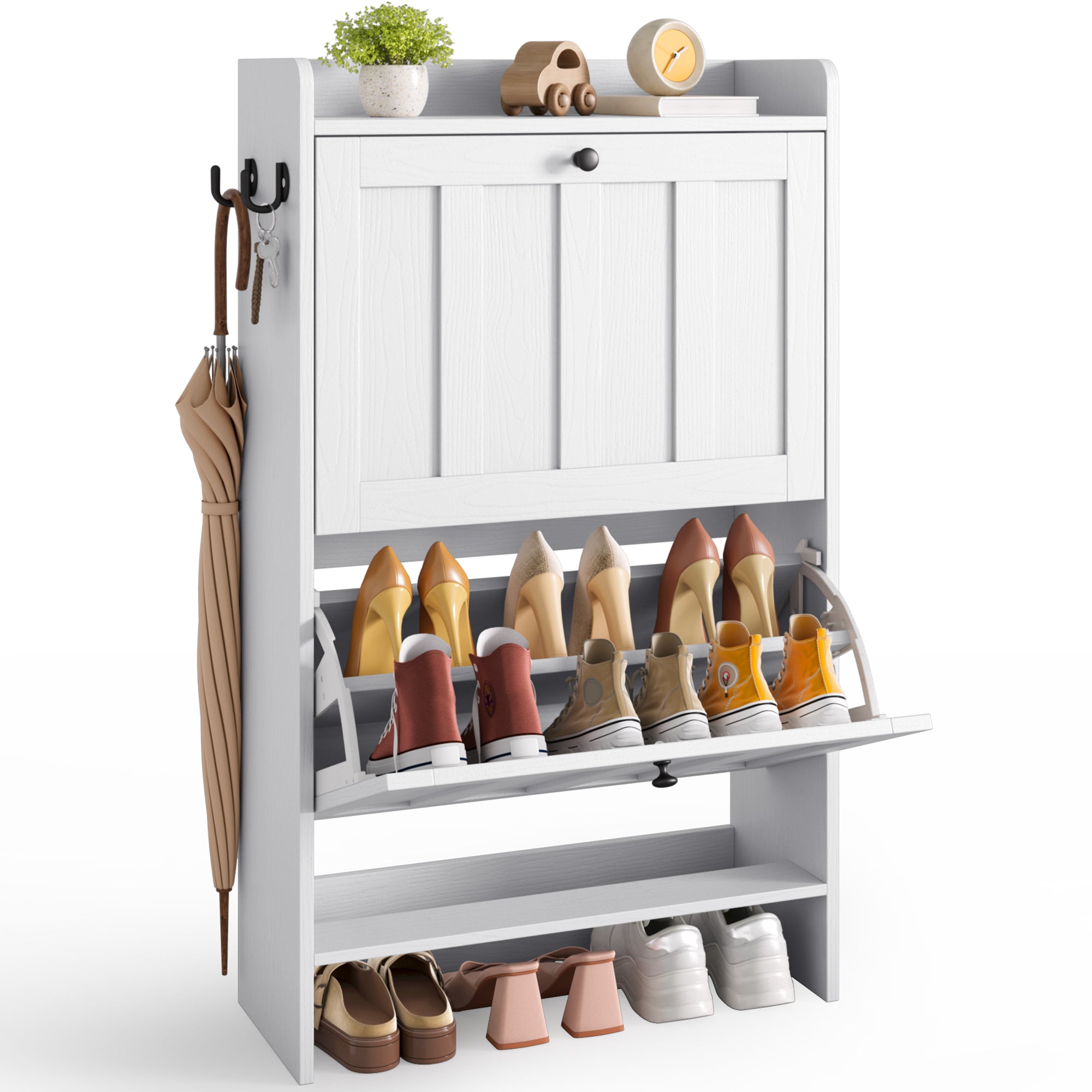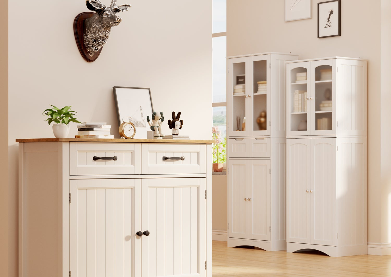 This multifunctional white storage cabinet comes with 6 extra wide and deep drawers, providing extra large storage capacity