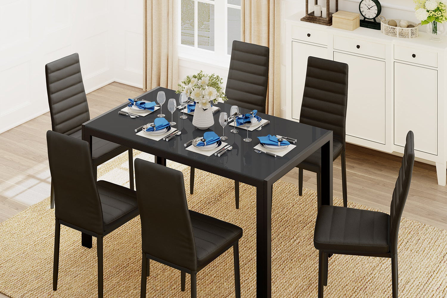 Every corner of this rectangular dining table set is fortified for enhanced stability, ensuring a solid foundation for all your meals and gatherings
