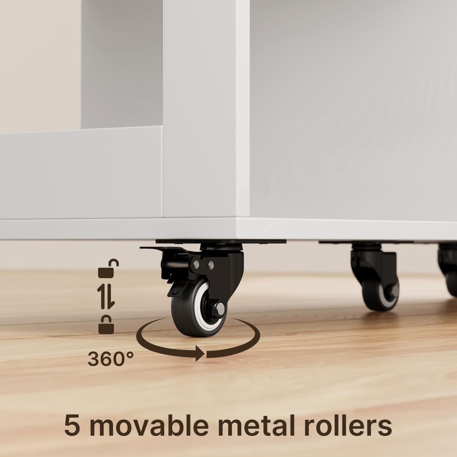 Aiho 41.7"W kitchen island with storage with Solid Wood Adjustable Shelf, rolling kitchen island with Spice Rack, Towel Rack and Removable Tray, For Kitchen, Coffee Bars, Dining Room, Parlor - White