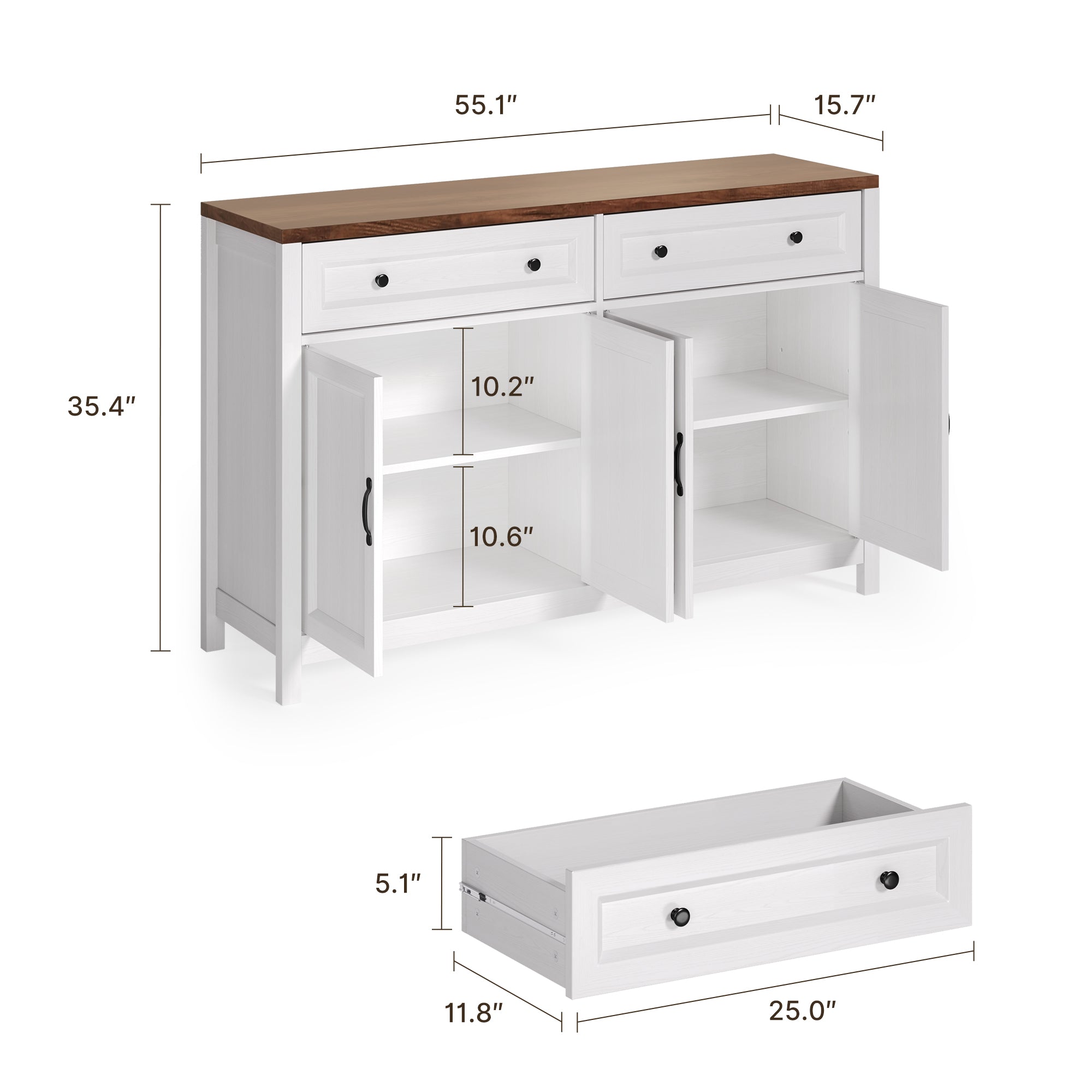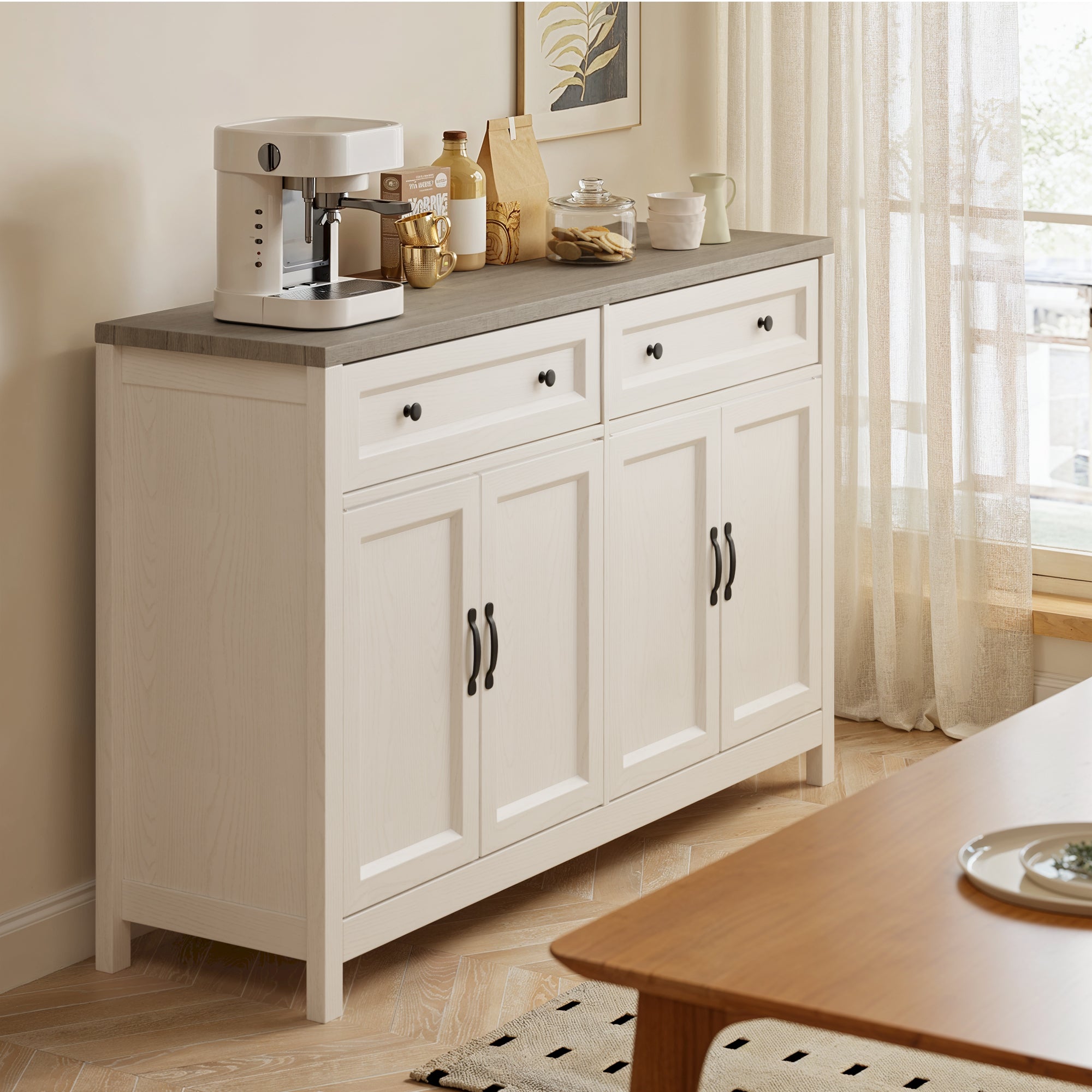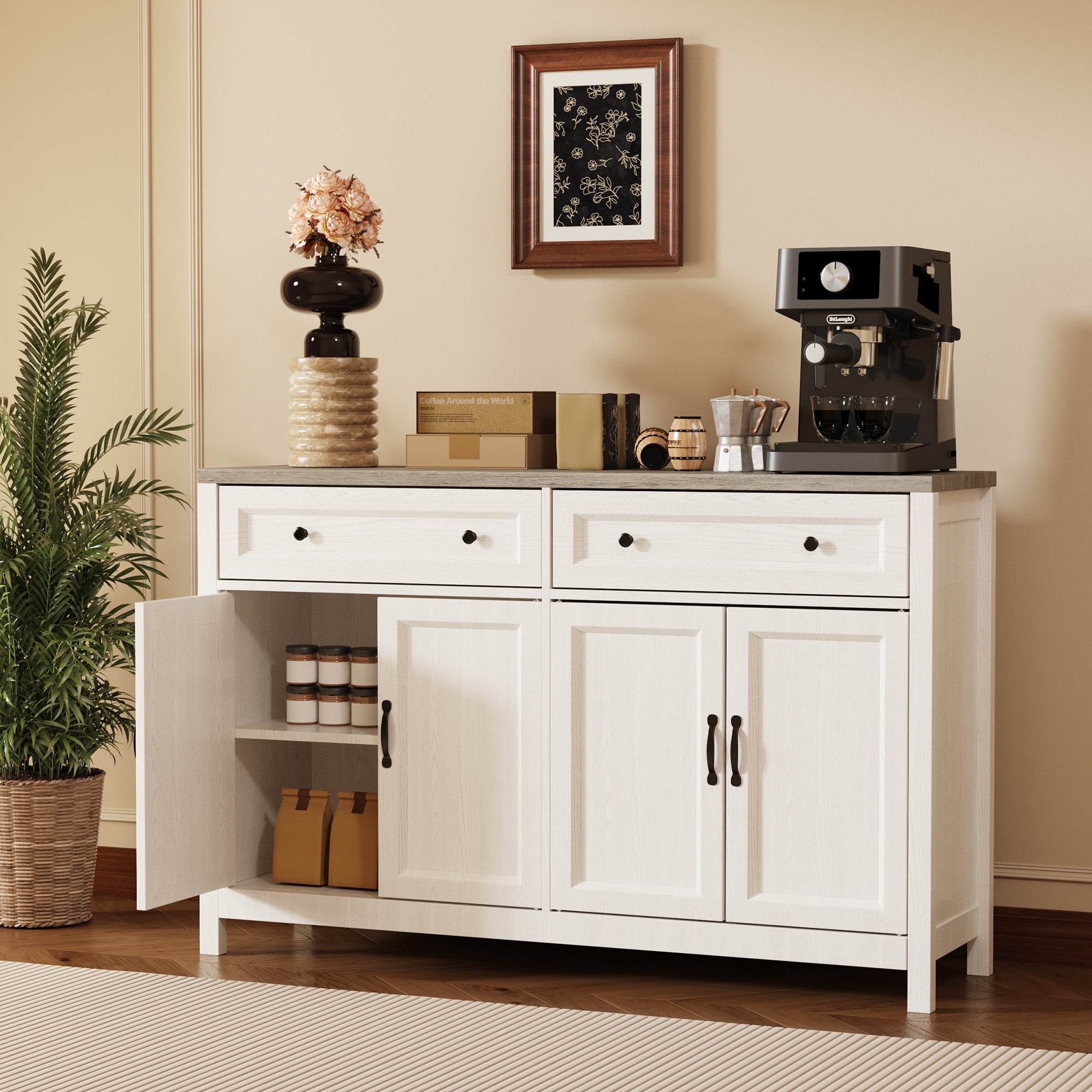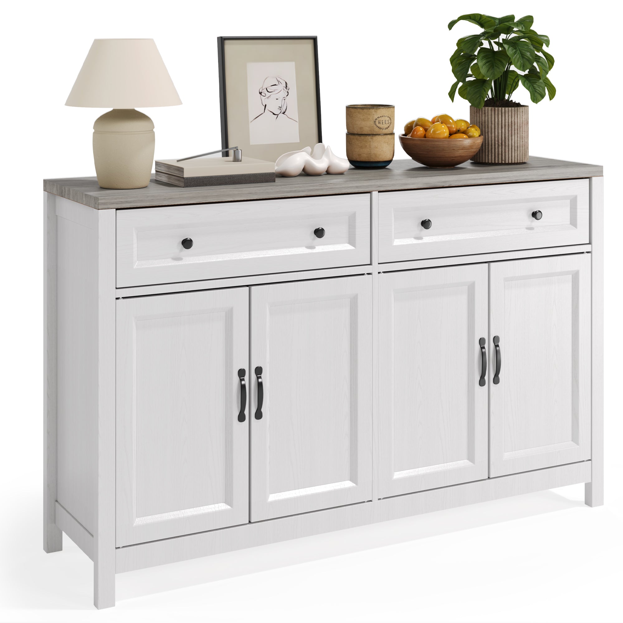 Aiho Farmhouse Kitchen Buffet Cabinet with Storage – 55.1" Rustic Sideboard with Drawers & Doors