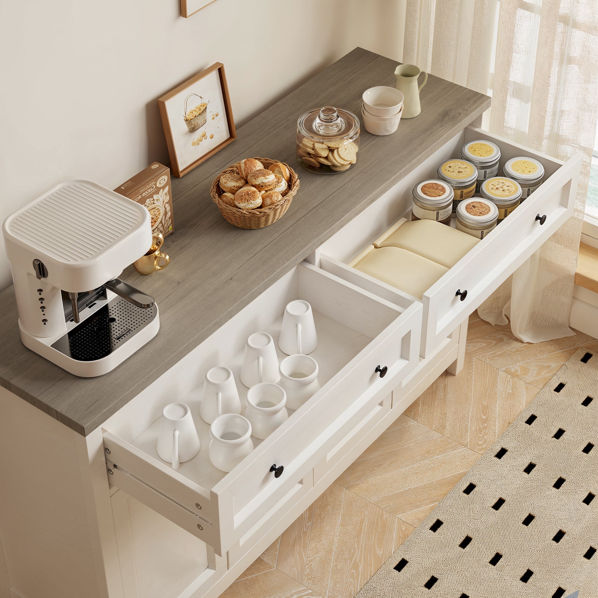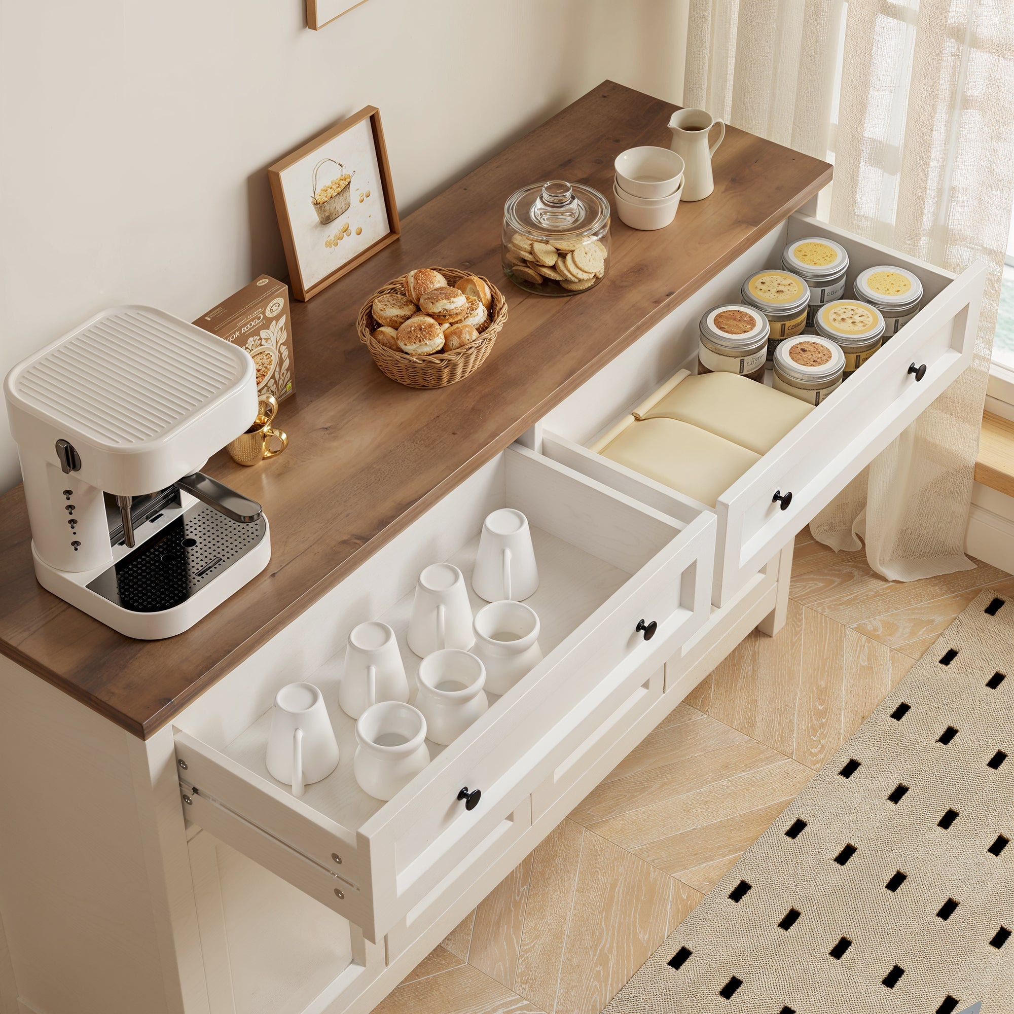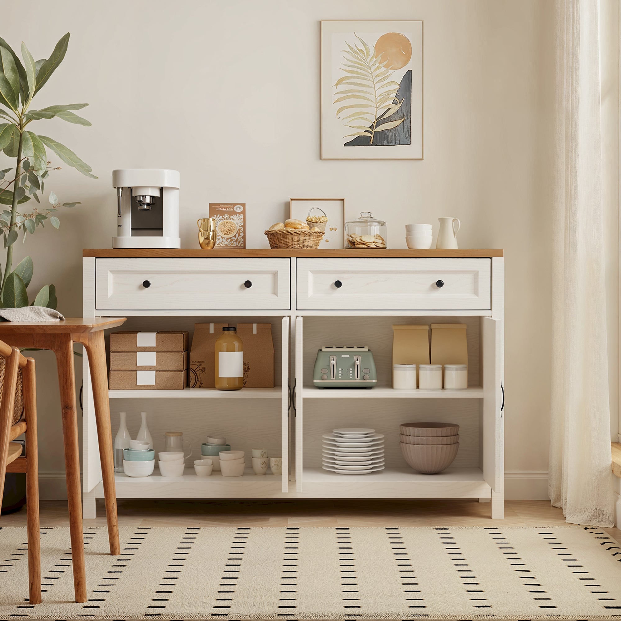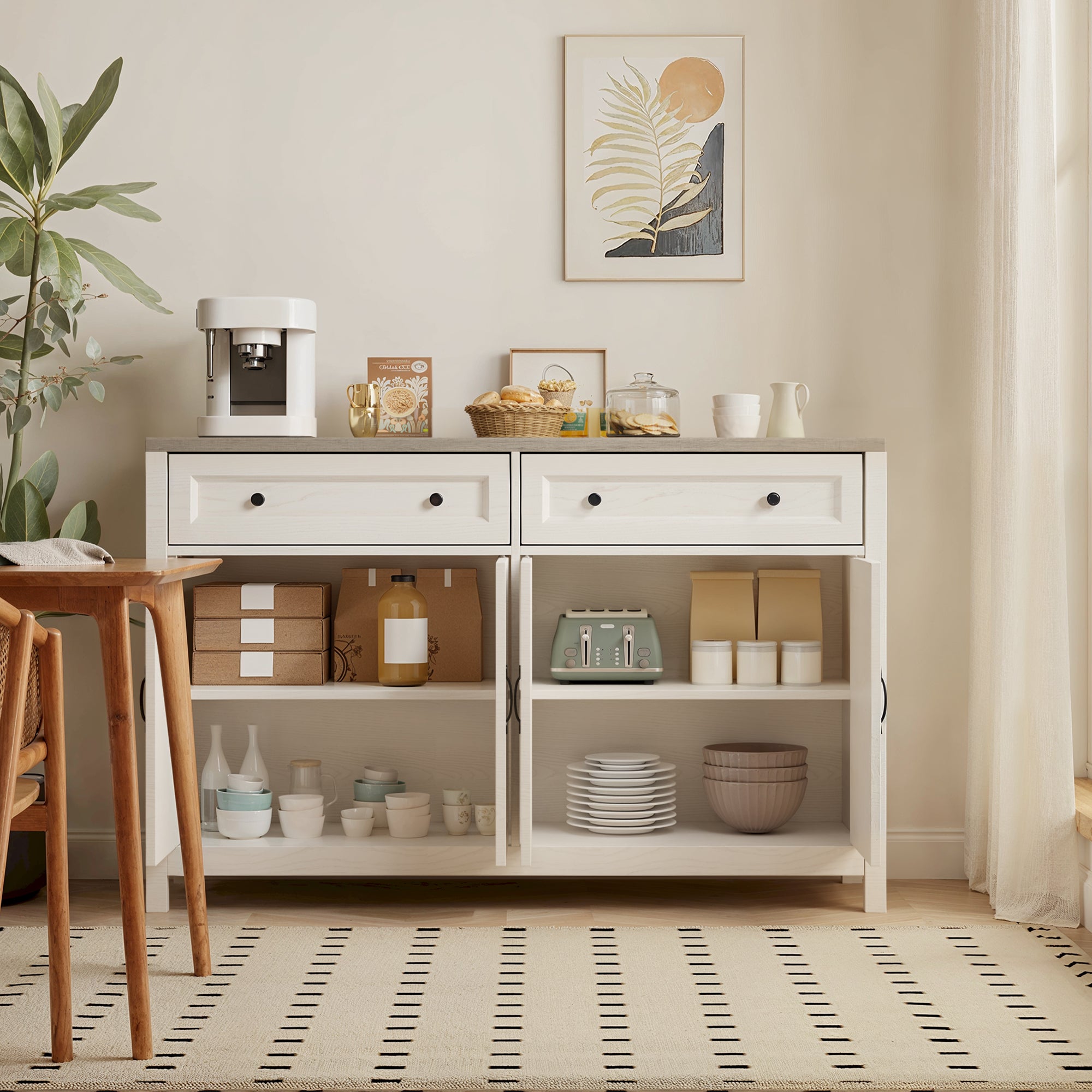 Aiho Farmhouse Kitchen Buffet Cabinet with Storage – 55.1" Rustic Sideboard with Drawers & Doors